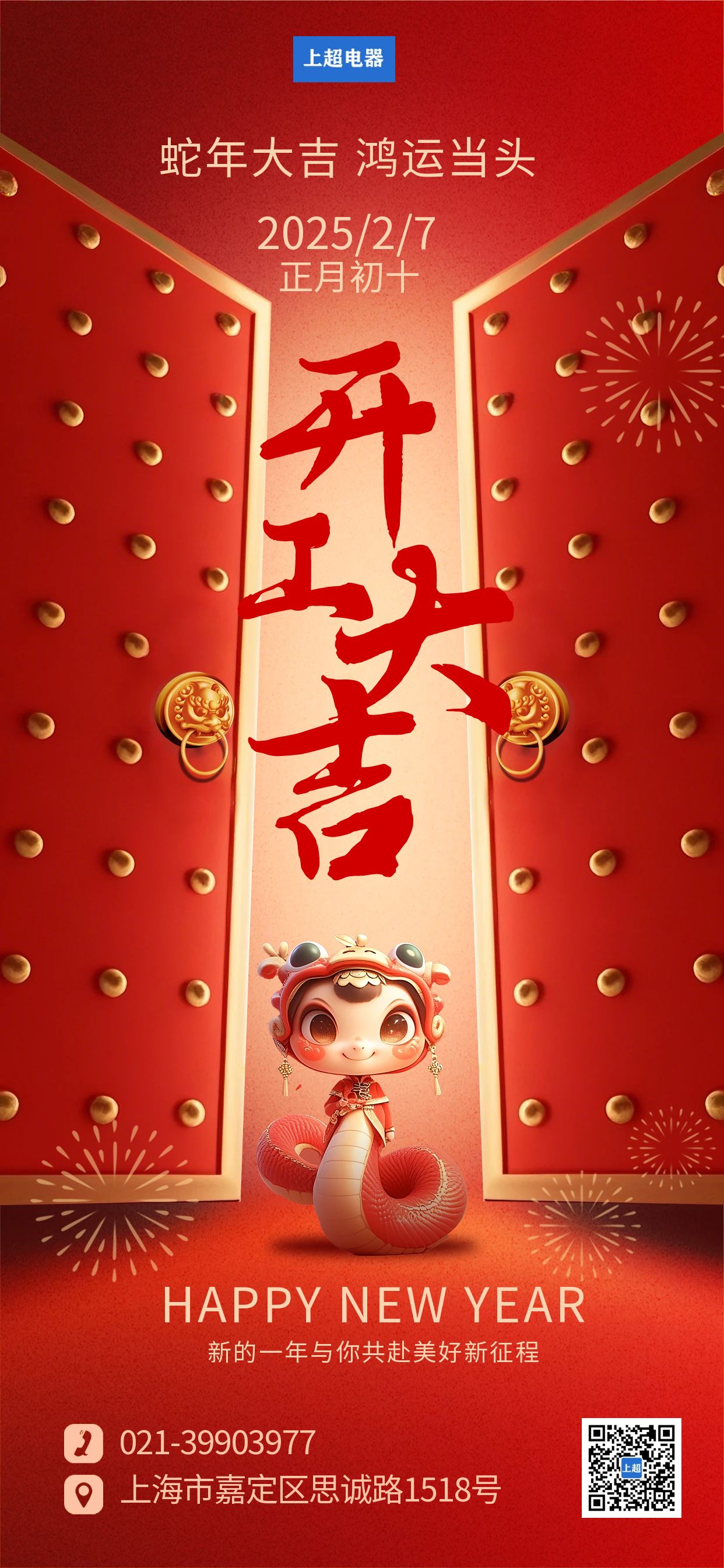新春伊始,萬象更新!值此乙巳蛇年開工之際,上超電器向全體員工、合作伙伴及廣大客戶致以最誠摯的祝福:開工大吉,財(cái)源廣進(jìn),萬事順?biāo)欤?/span>